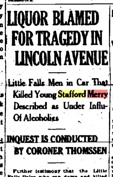 Death of son: Stafford Fielding Merry – July 25, 1921. Eleven year old Stafford was killed in a hit and run accident involving a drunk driver.