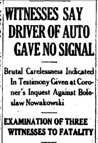 The Utica Observer reports on July 27, 1921 that the three men arrested for Stafford’s death were arraigned. Boleslaw Nowakowski admitted he was the driver and was charged with second degree manslaughter. Kula and Skulski were fined and released. The trial was held a few months later.