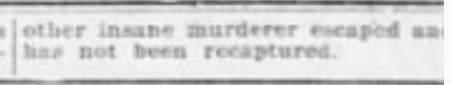 “Isaac Estrean, who escaped from Hamilton Asylum, where he had been confined since 1915 for the shooting of his sweetheart, Annie Garlock. He is now said to be going to Toronto to have his sanity tested and fight for freedom.”